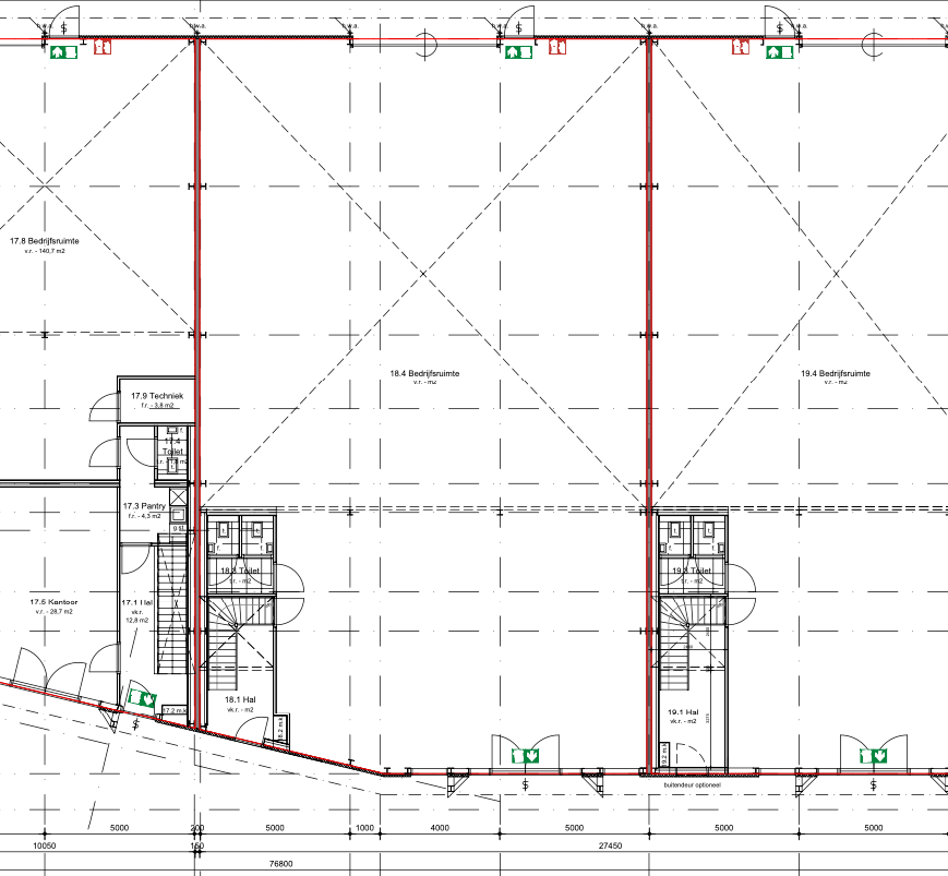 Het uitgangspunt is een oplevering in de huidige staat, leeg en ontruimd en aansluitingen voor water en elektra.