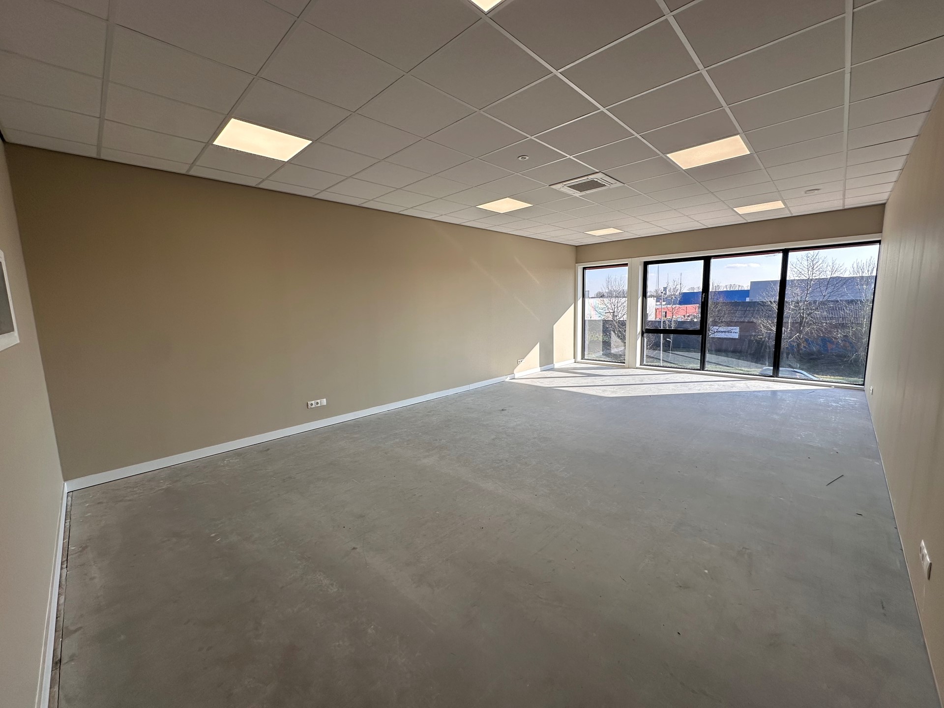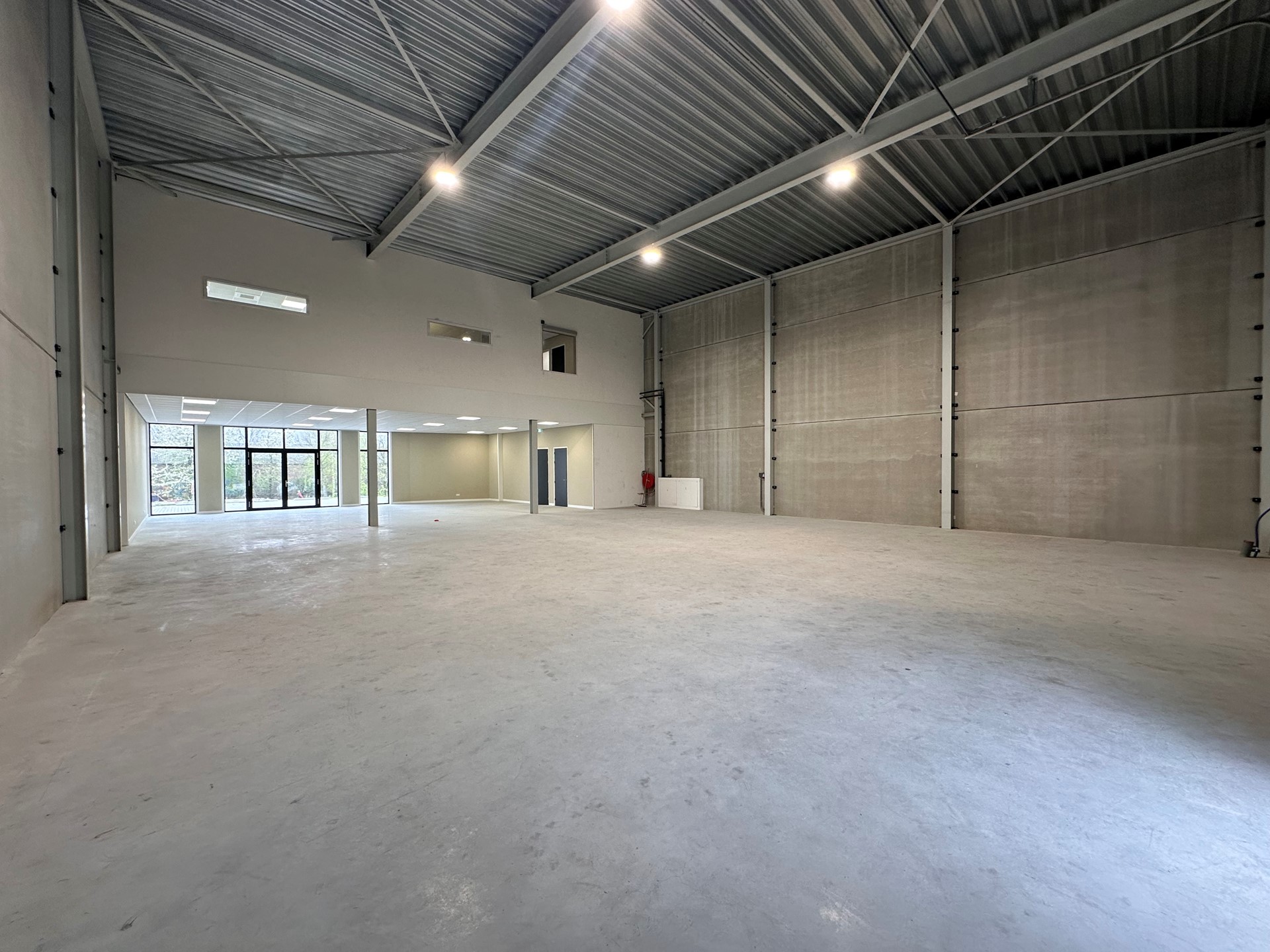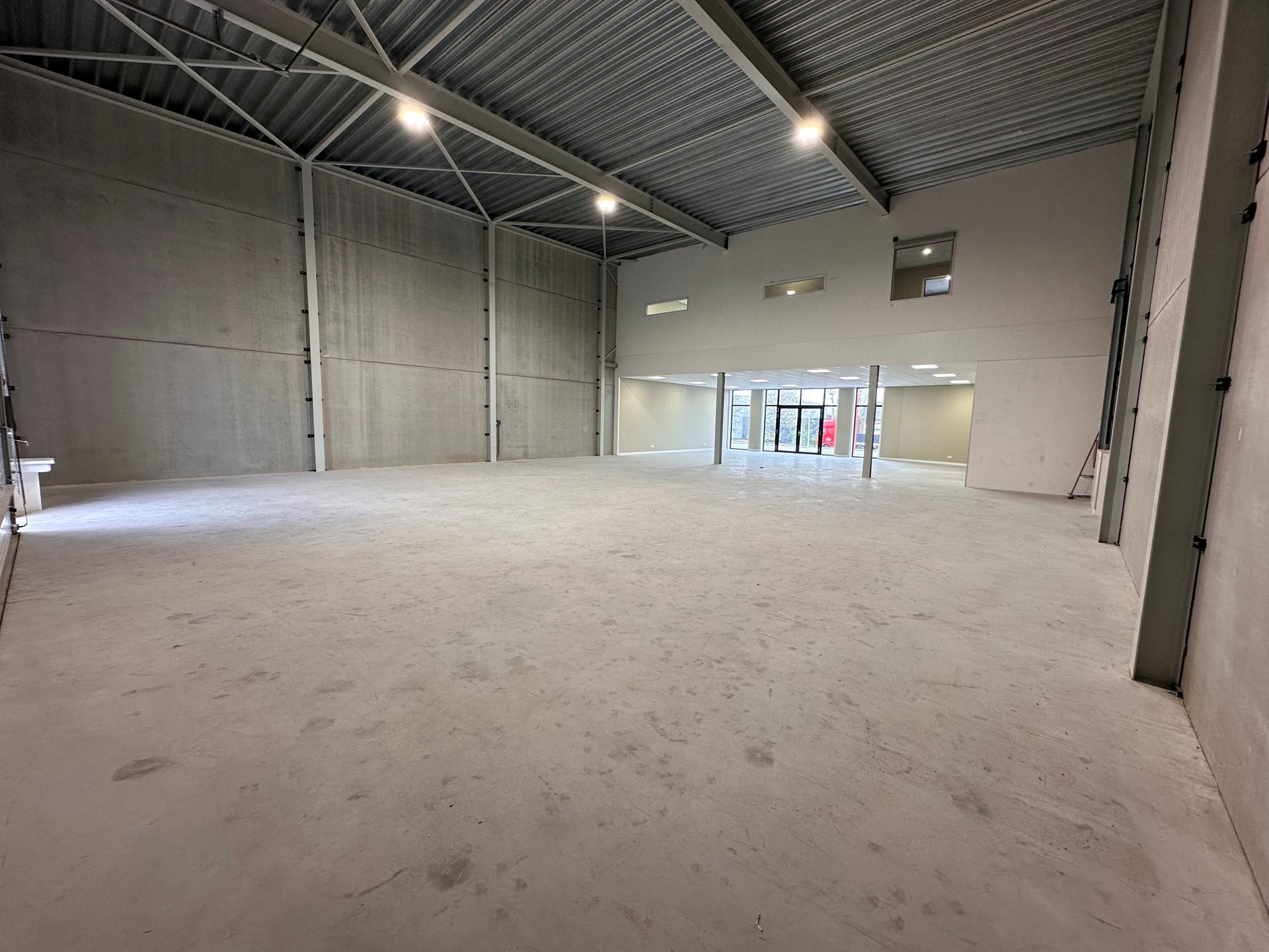 De unit beschikt over een eigen entree met een brede dubbele deur, waardoor de ruimte uitermate geschikt is voor showroomdoeleinden. Achter de showroom bevindt zich een royale bedrijfsruimte, ideaal voor opslag, werkplaats of andere commerciële activiteiten en een aparte toiletgroep voor dames en heren.