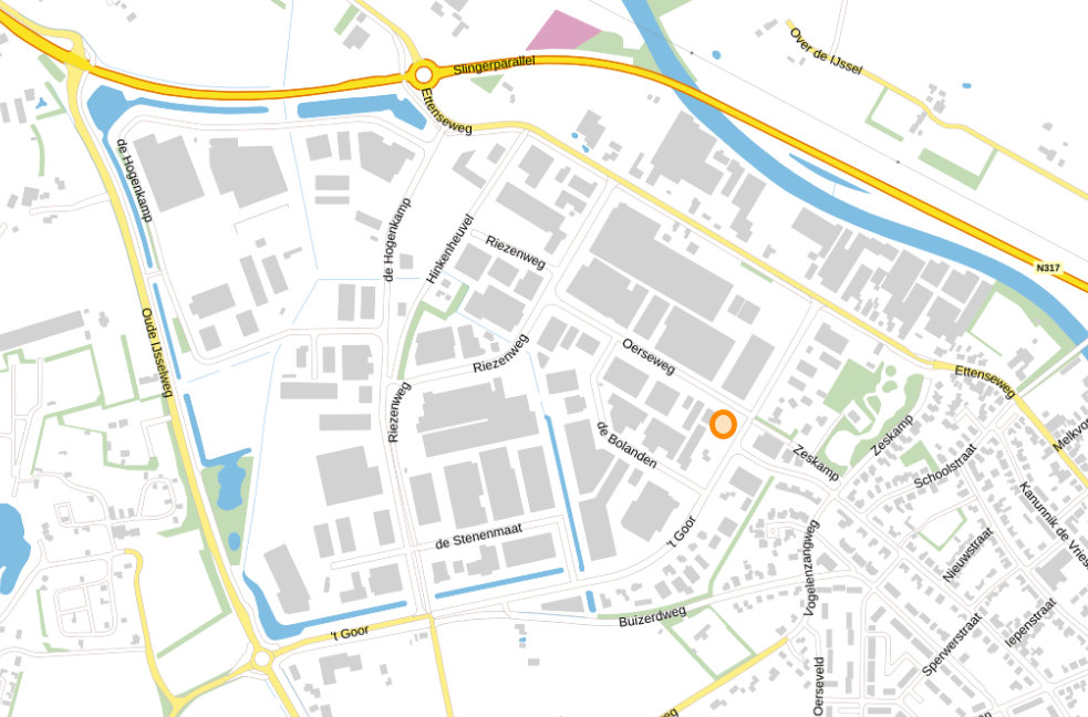 Het bedrijventerrein De Rieze is zeer gunstig gelegen, op ca. 10 minuten rijden van Doetinchem en goede aansluitingen op de snelweg A-18 en richting de A-12.