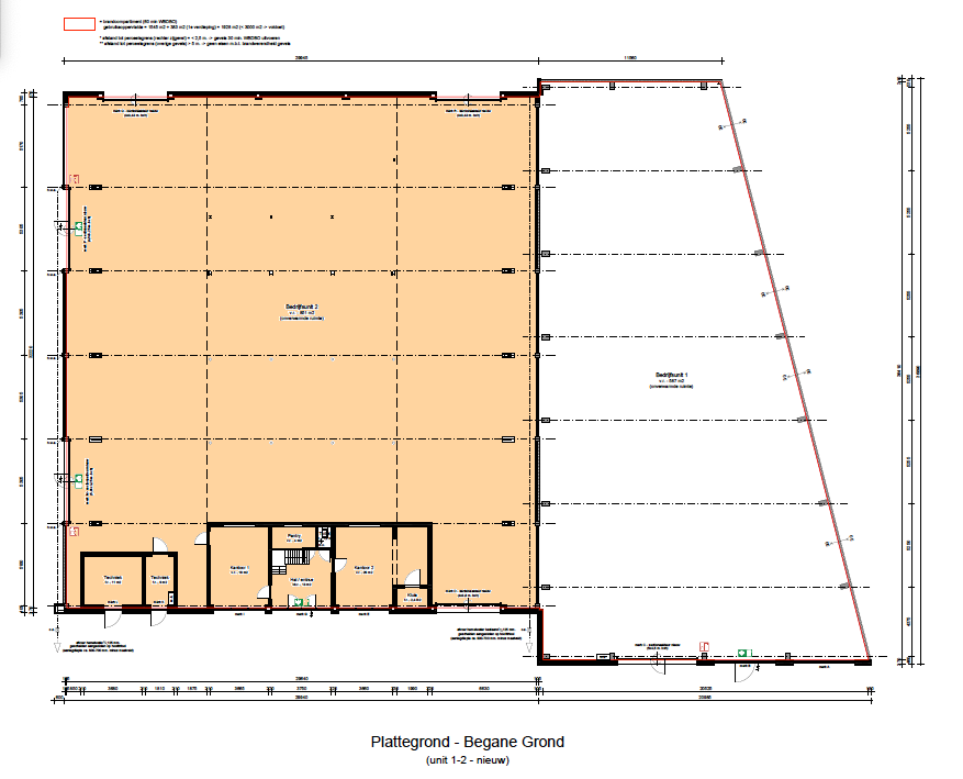Unit 2 bestaat uit een bedrijfshal met meerdere overheaddeuren, 2 kantoorruimten, entree, pantry en toilet op de begane grond. De 2 kantoren op de verdieping zijn middels een trap te bereiken. De kantoren worden in de huidige staat opgeleverd. De entresol is geschikt voor opslag. Unit 2 is voorzien van een royaal buitenterrein.