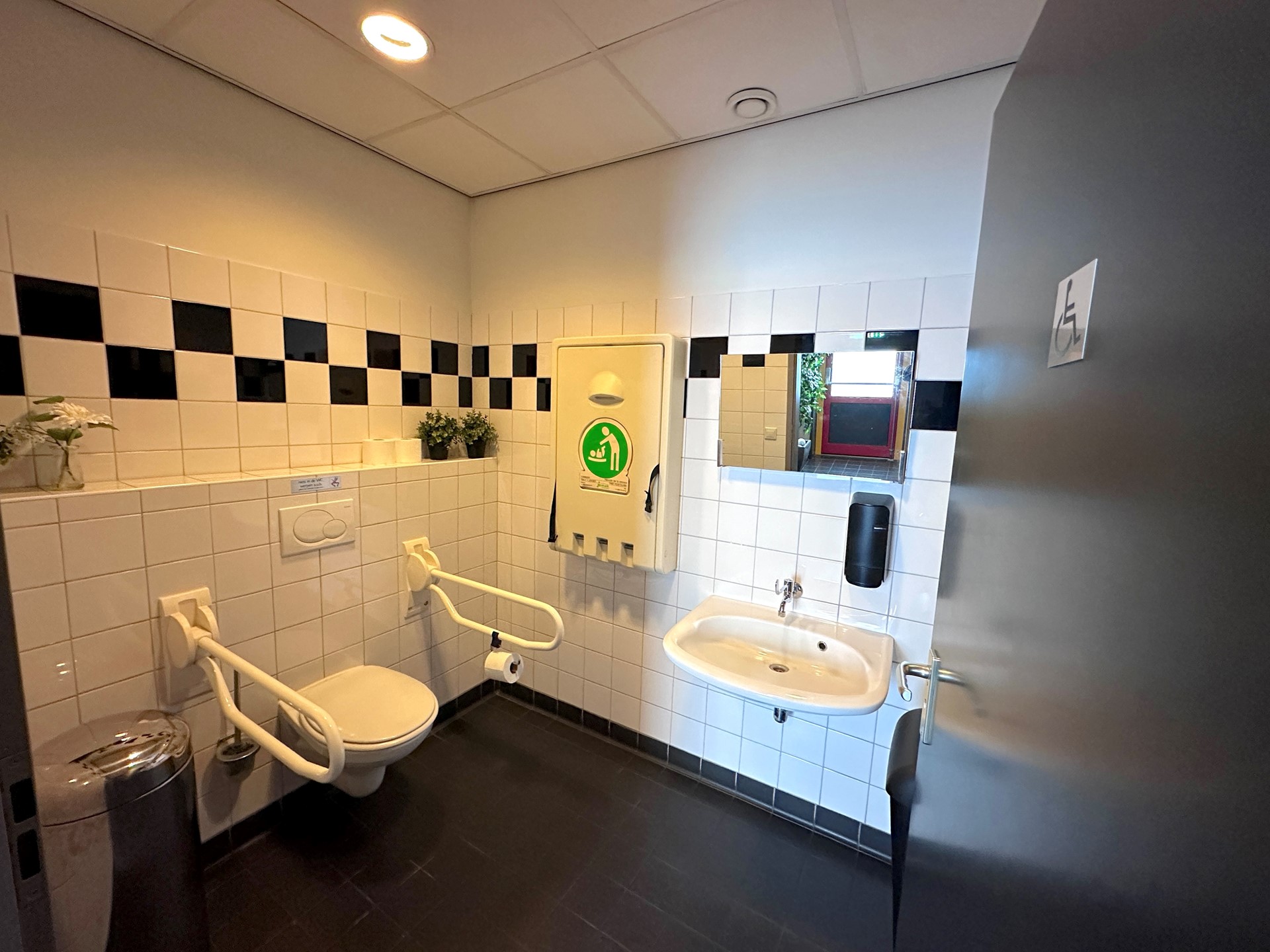 De gescheiden toiletruimte is achterin het restaurant gelegen.