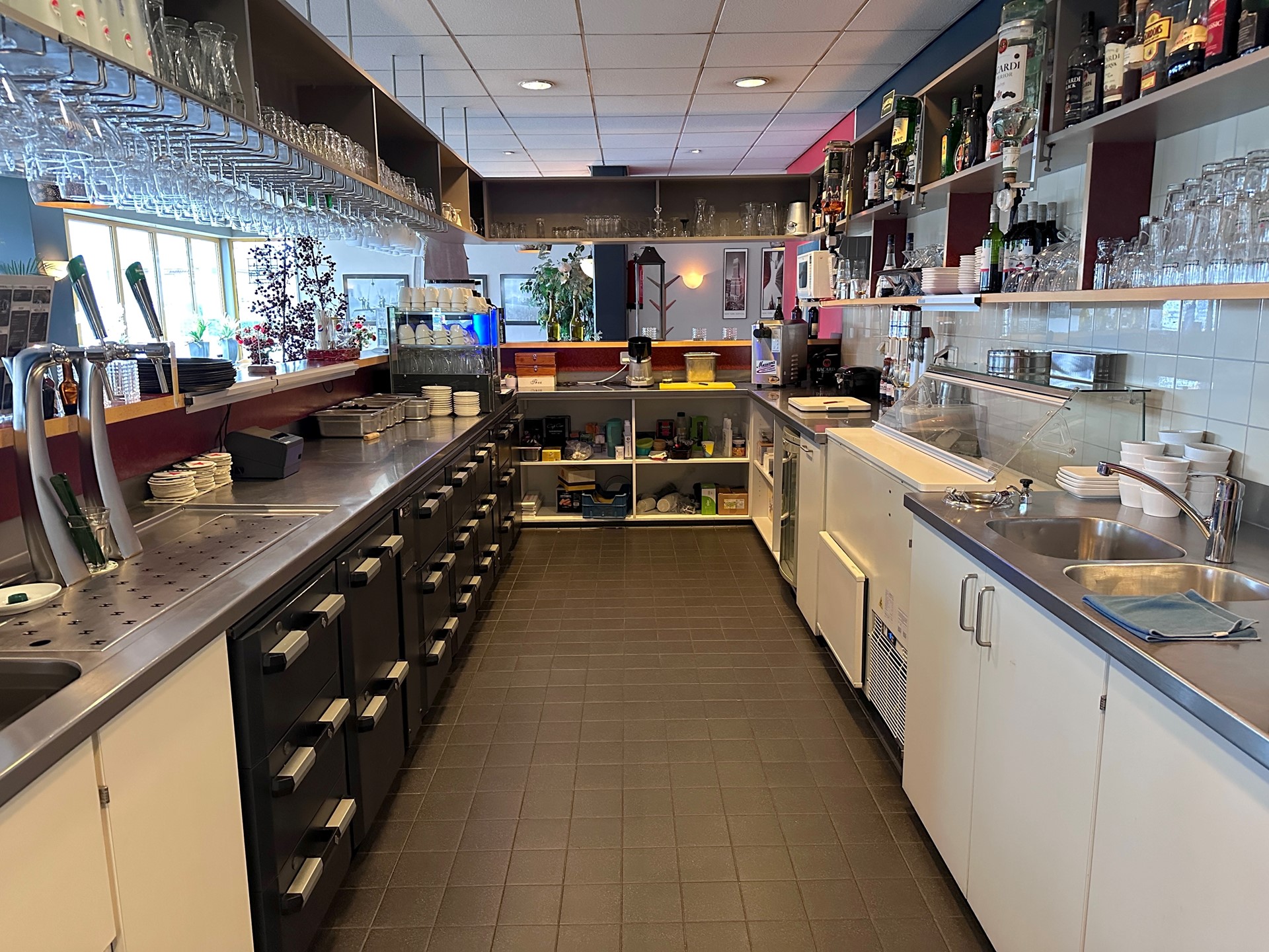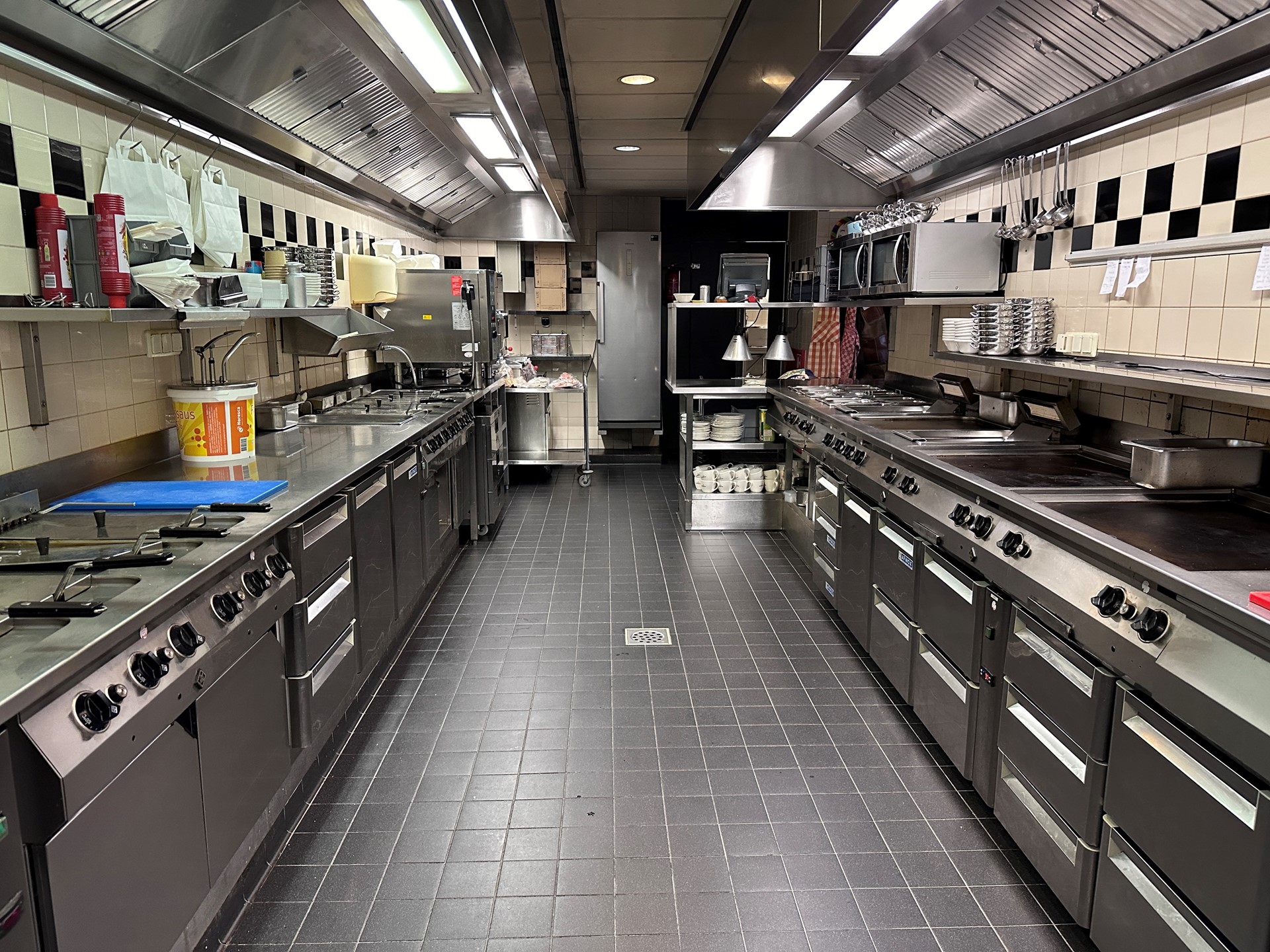 Compleet ingerichte keuken, er staat kwalitatief goede apparatuur en de routing is optimaal. Er is voldoende spoelgelegenheid en opslag (kelder) aanwezig. Tevens is in de kelder een volledige productie keuken aanwezig.